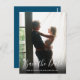 This modern script photo save the date card features your special photo overlayed with an elegant script save the date above your names, date and venue in white text. The reverse has additional save the date details, including your wedding website. You can customise the background to your favourite colour. Designed by Thisisnotme©