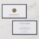 Stand out with these high-quality business cards featuring a striking gold emblem with scales of justice on a clean white background, framed in a rich navy blue border. Ideal for attorneys and legal services to network and introduce their professional identity.