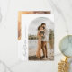 A modern photo design with a photo and arch design. You can upload your own image and edit. The text and colours can personalised.