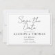 Timeless style, unforgettable announcement. This Simple Script Black and White Save the Date card features chic handwritten-style typography on a crisp, minimal layout—perfect for couples who want a modern, elegant way to announce their big day. Fully customisable with your names, date, and location, this design is ideal for formal weddings, minimalist themes, or black-tie affairs. Sophistication made simple.