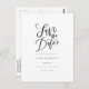 Simple elegant black and white script save the date announcement postcard with love heart. Add your special announcement details in a classic text. The reverse has additional save the date details, including your wedding website, with your return address and space for your recipient's address.