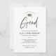 Simple Script Black and White Photo Graduation Announcement with elegant gold foil cap and minimalist typography. Click the edit button to customise this design. Easily add a photo to the back.