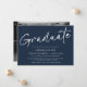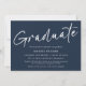 This is a minimalist and simple graduation announcement. It uses a modern and stylish handwritten script design in classic dark blue and white, with a photo on the back. This design applies a black and white filter to your photo, to remove or change this press the blue button to edit your design, then select the photo and edit the filter settings accordingly. Please contact the designer for any queries about this design.