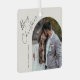 Simple Script Boho Arch Photo Christmas Metal Ornament. The back has wildflower pattern. Click the personalise button to customise this design with your details.