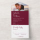 Simple Script Burgundy Monogram Photo Wedding All In One Invitation