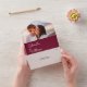 All in one wedding invitation featuring your photo, monogram initials and elegant modern minimalist typography on a burgundy background. The invitation includes a perforated RSVP card that’s can be individually addressed or left blank for you to handwrite your guest's address details. Designed by Thisisnotme©