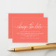 Easily personalize these change the date cards with your names and location by using the "personalize this template" section or click the "customize further" link to change the font styles, colors and layout to suite. There is also room on the back of the card to add more wording or a photo of your choice.