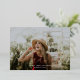 A trendy graduation announcement with simple script and a message on the back.