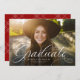 A classic and elegant script graduate in white sits at the bottom of a horizontal photo. The custom text includes room for the graduate's name and also school and year details. The classic red backer has a simple grid pattern, and the color can be changed by clicking "customize further." Announce your graduate's accomplishment to friends and family with this design!