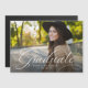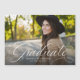 A classic and elegant script graduate in white sits at the bottom of a horizontal photo. The custom text includes room for the graduate's name and also school and year details. This magnetic card is the perfect way to announce your graduate's accomplishment to friends and family!