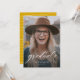A simple classic script "graduate" in white accentuates a single vertical photo of your grad. This graduation announcement works for both college or high school graduates and is simple enough to let your photo shine. It's a timeless design and also features a striped backer with a customizable color (default is a classic shade of golden yellow).