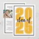 A timeless and versatile vertical graduation announcement featuring the year "2025" in bold yellow or gold font, with "class of" elegantly written in black script across the middle. The design includes sleek black line frames on both the front and back, adding a polished touch. Fully customisable, you can adjust the year, text, and background colours to match school colours or your theme.
