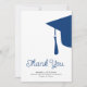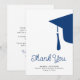 Modern trendy script navy blue and white simple minimalist graduation thank you card template featuring a graduation cap with tassels. ++++++++++ Easy to personalise with your details and custom text! Digital download available.