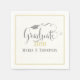 Celebrate in style with this graduation party napkin featuring a black and gold colour scheme and fancy chic typography design. Perfect for any high school or college event, this simple, minimalist napkin showcases elegant calligraphy script and a grad party hat icon. Personalise it with the graduate's name template and Class of [Year] for a sophisticated touch. Elevate your celebration—customise yours today!