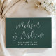 Add a personalised touch to your wedding ceremony with this Simple Script green guest book. The design features your names displayed in an elegant white calligraphy script with your wedding date and location shown below on a dark green background. Add your custom text to the spine of the forest green guest book. The back of the guest book features your horizontal engagement photo.