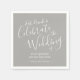 Simple modern script text grey and white with white heart wedding of napkins. Typographical text reads Eat, drink & celebrate the wedding of then add your own bride and grooms names and wedding date. Other matching items and colours available in this design. © Original design by www.mylittleedenweddings.com on zazzle.