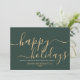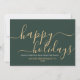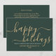 Simple minimalist green business holiday card with an elegant modern script reading "Happy Holidays" in a beautiful gold colour. This card is fully customisable. You may change any message with the one of your choice.