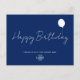 Strengthen your professional relationships with this simple, minimalist navy blue business birthday postcard. Featuring handwritten-style script "Happy Birthday" text in white and a charming balloon illustration, this card blends elegance with warmth. Thoughtfully designed, it includes space for your logo on the front, making customisation quick and easy online. The navy blue background can be personalised to align perfectly with your company’s branding, ensuring a polished and professional presentation. Ideal for celebrating employees, loyal customers, and trusted business partners, this postcard offers a refined way to express your appreciation.