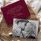 Modern wedding thank you card featuring your horizontal wedding photo with "Love & Thanks" displayed in a simple white script overlay. Personalise the photo thank you card with your name. The card reverses to a solid burgundy background with space for additional photos and text.
