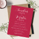 The wedding couple names are written in an elegant white script. The wedding details are written in a classic serif font. Very subtle rays of sunlight play across the front and back. There is a version with no rays of sunlight on front. If you prefer a more minimalist design, you can just delete the sunlight rays. This wedding invitation is part of the Simple Script and Sunlight Collection.