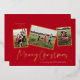 A simple Christmas card featuring 3 photos with gold foil pressed script merry Christmas hand lettering. The background, foil and font colour are completely customisable to easily match the colour scheme of your photograph(s). Click the edit button to customise this design.