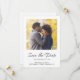Modern photo Wedding Save the Date card with a simple script design. With customisable lettering, you add your names, and wedding information. You can also add your own photo to add a touch of personalisation. An elegant boho announcement for planning your special day.