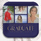 Simple Script Multi Photo Grad Graduation Party features four of your favourite photos of your college or high school graduate on the front with the elegant modern gold calligraphy script "Graduate" overlay. Personalise with name, class of and school or college. Simple, stylish and classy. Created by ©Evco Studio www.zazzle.com/store/evcostudio