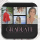 Simple Script Multi Photo Grad Graduation Party Paper Plates Tableware features four of your favourite photos of your college or high school graduate on the front with the elegant modern pink calligraphy script "Graduate" overlay. Personalise with name, class of and school or college. Simple, stylish and classy. Created by ©Evco Studio www.zazzle.com/store/evcostudio