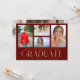 Simple Script Multi Photo Graduation Announcement Card features four of your favourite photos of your college or high school graduate on the front with the elegant modern gold calligraphy script "Graduate" overlay. Add an additional photo on the reverse. Simple, stylish and classy. Created by ©Evco Studio www.zazzle.com/store/evcostudio