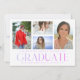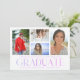 Simple Script Multi Photo Graduation Announcement Card features four of your favourite photos of your college or high school graduate on the front with the elegant modern purple calligraphy script "Graduate" overlay. Add an additional photo on the reverse. Simple, stylish and classy. Created by ©Evco Studio www.zazzle.com/store/evcostudio