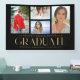 Simple Script Multi Photo Graduation Announcement Banner features four of your favourite photos of your college or high school graduate on the front with the elegant modern gold calligraphy script "Graduate" overlay. Perfect for a Graduation Party Simple, stylish and classy. Created by ©Evco Studio www.zazzle.com/store/evcostudio