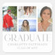 Simple Script Multi Photo Grad Graduation Party Stickers & Labels features four of your favourite photos of your college or high school graduate with the elegant modern silver calligraphy script "Graduate" overlay. Personalise with name, class of and school or college. Simple, stylish and classy. Created by ©Evco Studio www.zazzle.com/store/evcostudio
