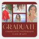 Simple Script Multi Photo Grad Graduation Party Stickers & Labels features four of your favourite photos of your college or high school graduate with the elegant modern gold calligraphy script "Graduate" overlay. Personalise with name, class of and school or college. Simple, stylish and classy. Created by ©Evco Studio www.zazzle.com/store/evcostudio