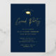 Simple Script Navy Blue Photo Graduation Party foil invitation with elegant graduation cap and minimalist typography. Click the edit button to customise this design. Easily add a photo to the back.