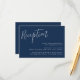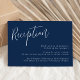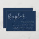 Elegant wedding reception enclosure cards featuring "Reception" in a white script with a solid navy background (or colour of your choice). Personalise the simple wedding reception cards by adding your reception details in white lettering. Designed to coordinate with our Simple Script wedding collection.