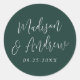Simple Script Personalised Forest Green Wedding Classic Round Sticker