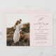 A simple and chic blush pink photo wedding invitation featuring elegant script calligraphy details and classic text on the front. The back has a spot for your wedding website at the bottom. You can also upload additional photo(s) in the empty space on the back. Click the edit button to customise this design.