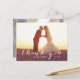 No "postcard" word on the back of card. Place two photos on your wedding thank you cards, one on the front and a second photo on the back. Send out your wedding thank you message as newly weds to your friends and family using this beautifully, simple thank you wedding photo postcard with the words "thank you" written in a white handwriting script text overlay. Wedding Thank You Postcards with Your Photo. Design by Elke Clarke© . Replace the sample photo with your own. Add your personal thank you message on the back or leave blank and hand write your message in person. Other colours available.