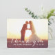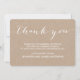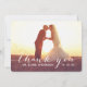 Simple Handwritten Script Overlay Photo Wedding Thank You Cards. Design by Elke Clarke© for MonogramGallery printed by Zazzle. Send out your wedding thank you message as newly weds to your friends and family using this beautifully, simple thank you wedding photo card with the words "thank you" written in a white hand writing typography script text overlay. Replace the sample photo with your own. Add your personal thank you message on the back. Printed photo effect of beige kraft paper on the back. Other colours available.