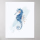 Simple Seahorse Blue & Gold Watercolor Aquatic Poster