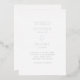 A simple text based wedding invitation with your wedding details in real silver foil serif font.