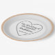 A Simple and Clean Silver Grey Outlined Hearts Design Paper Plate with clear wording. Warm ochre border.