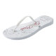 Dance the night away with these beautiful wedding flip flops. Designed for the bride, they feature a simple yet elegant design with crimson red script lettering on a white background and fancy silver grey lace curls and swirls. Beautiful way to stay fancy and appropriate while giving your feet a break after a long day.