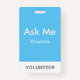 Simple Sky Blue Personalised Volunteer Ask Me ID Badge