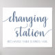 Trendy smoky denim blue and white horizontal diaper changing designation area shower, party, or reception table signage featuring a fun, casual hand-lettered script. The classic design includes a modern handlettered quote typography overlay. The lovely font with a customizable background color makes it easy to fit any theme. For other colors or matching products, please visit the JustFharryn Zazzle store, or contact the designer, c/o fharryn@yahoo.com All rights reserved. #zazzlemade