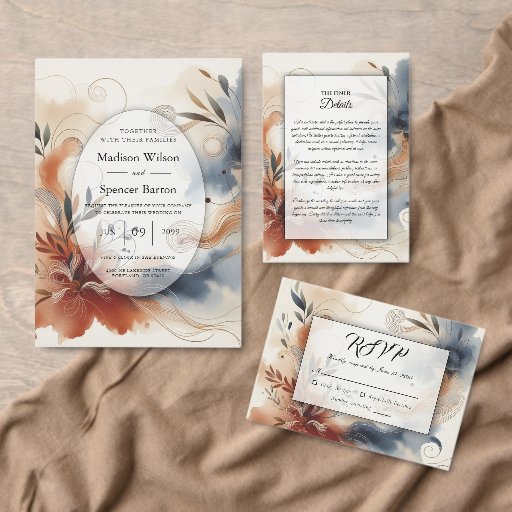 Terracotta Twilight and Navy Blooms Wedding SuiteDesigned by Lacey Moyer