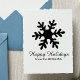Simple Snowflake Family Name Script Holiday rubber stamp. The design has a simple snowflake and a Happy Holidays text and the family name in a trendy script - personalize the stamp with your family name.