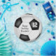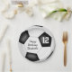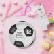 These sporty soccer themed birthday party paper plates feature a simple soccer ball graphic upon which you can customise the text - by katz_d_zynes