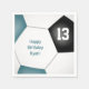 These soccer themed birthday party paper napkins feature the abstractly oversized image of a soccer ball that has teal, black & white panels, upon which you can customise the text - by katz_d_zynes