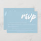This is a soft blue Modern Wedding RSVP card with meal choice template, that will be great for any Wedding. This reply card is double-sided and has monograms and a wedding website (optional) on the backside. All text is editable, just click on 'Personalise this template'. You can also change background colour, just click on "Customise further".